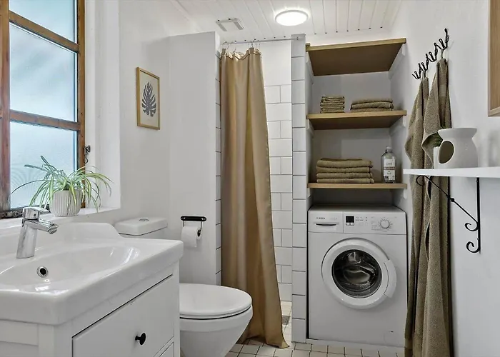 This Roslev holiday home includes a bathroom with a shower and a washing machine.